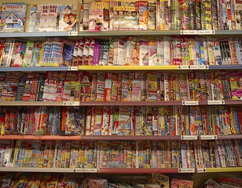 Unser Zeitschriftenregal enthält ein großes Angebot von Zeitschriften und Tageszeitungen.